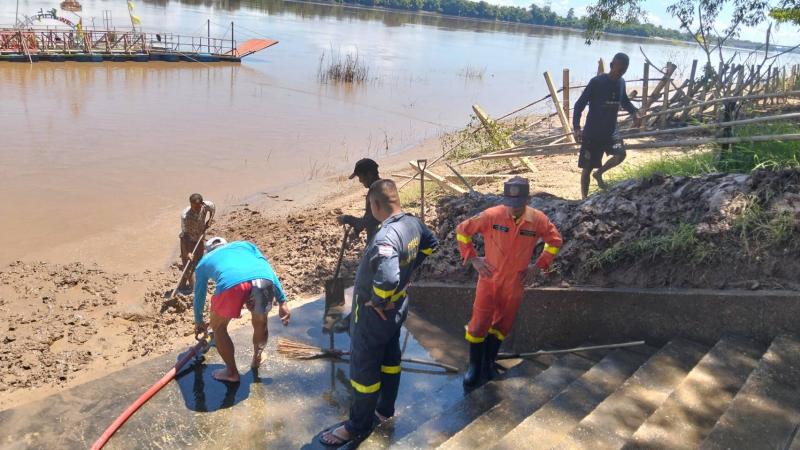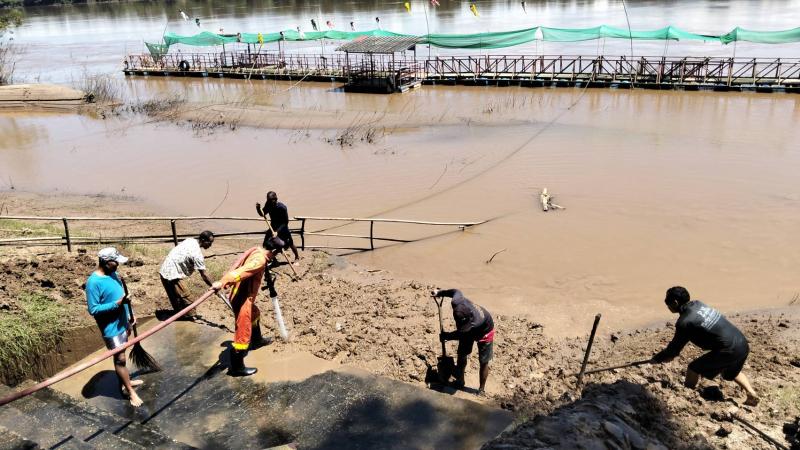 ล้างบันไดทางลงรอยพระพุทธบาทเวินปลา หมู่ที่ 1 บ้านเวินพระบาท