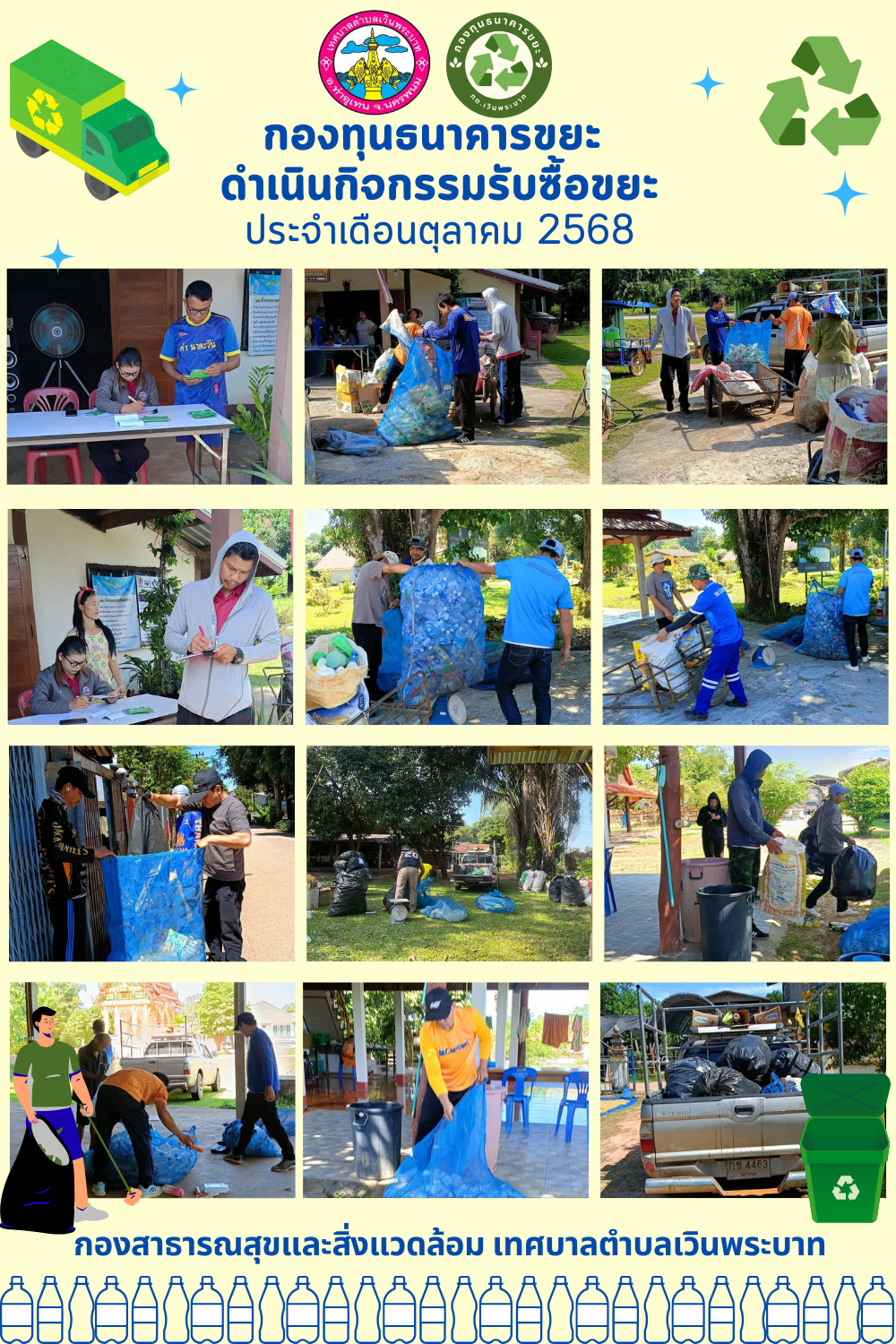 กิจกรรมรับซื้อขยะ กองทุนธนาคารขยะเทศบาลตำบลเวินพระบาท ประจำเดือน ตุลาคม 2568 [27 ตุลาคม 2568]