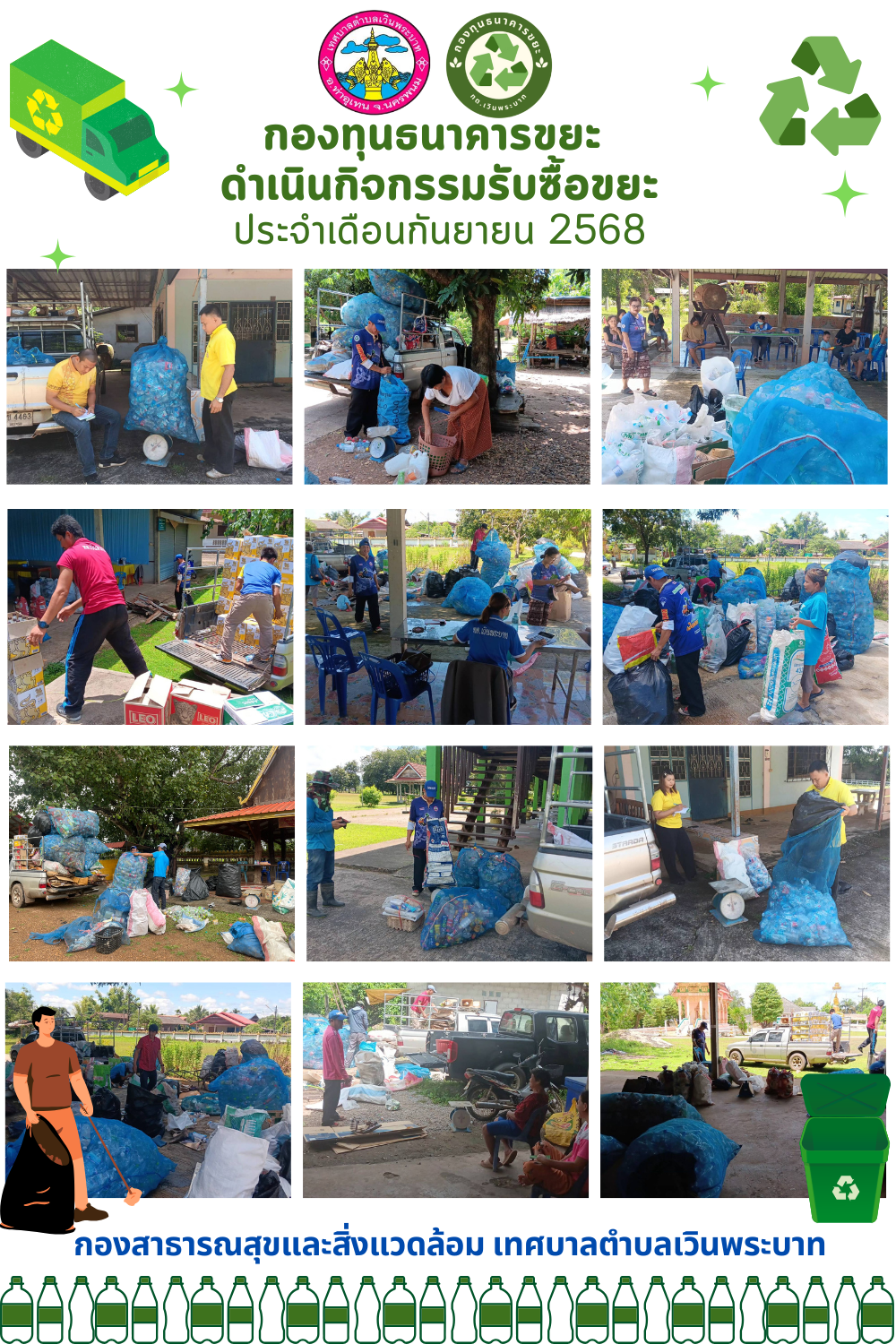 กิจกรรมรับซื้อขยะ กองทุนธนาคารขยะเทศบาลตำบลเวินพระบาท ประจำเดือน กันยายน 2568 [26 กันยายน 2568]