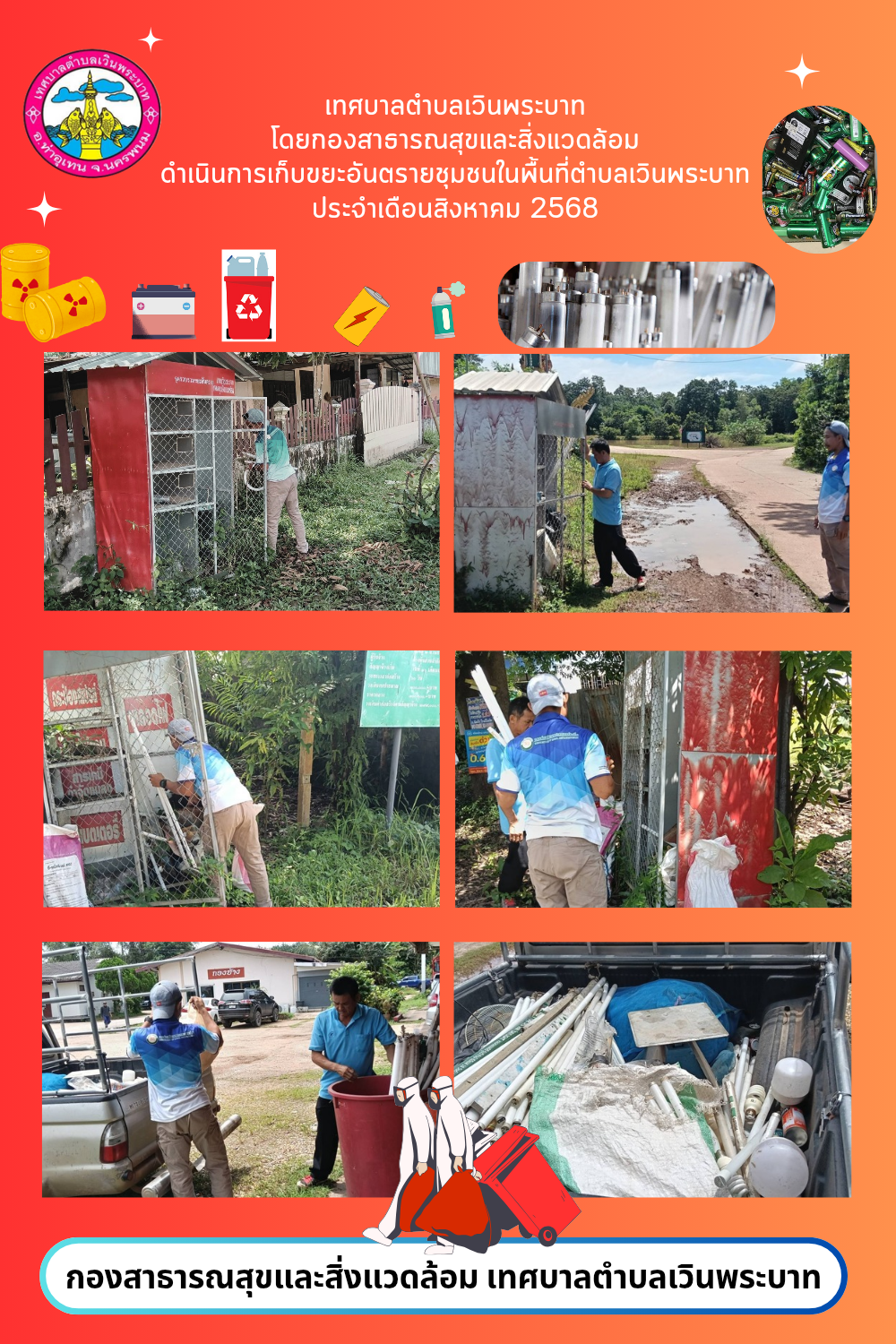 กองสาธารณสุขและสิ่งแวดล้อม ดำเนินการเก็บขยะอันตราชุมชน ประจำเดือน สิงหาคม 2568 [29 สิงหาคม 2568]