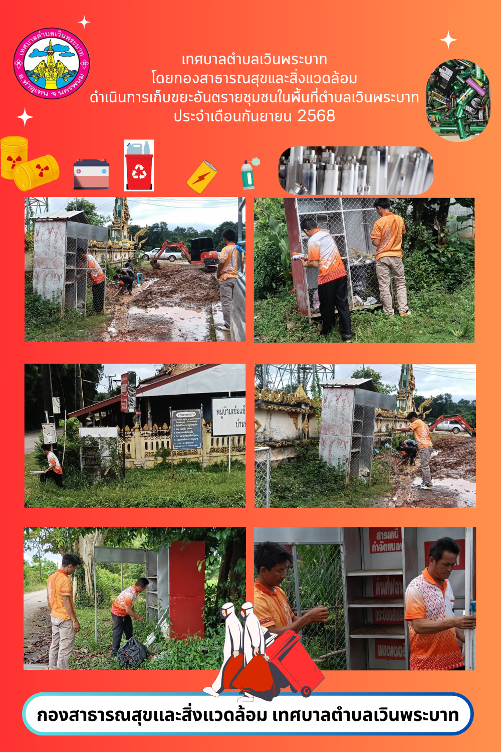 กองสาธารณสุขและสิ่งแวดล้อม ดำเนินการเก็บขยะอันตราชุมชน ประจำเดือน กันยายน 2568 [25 กันยายน 2568]